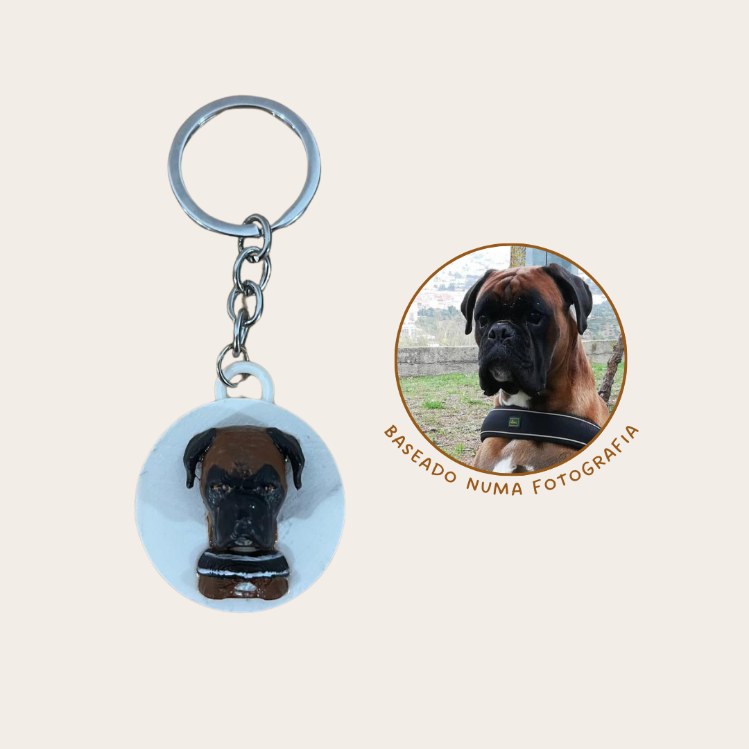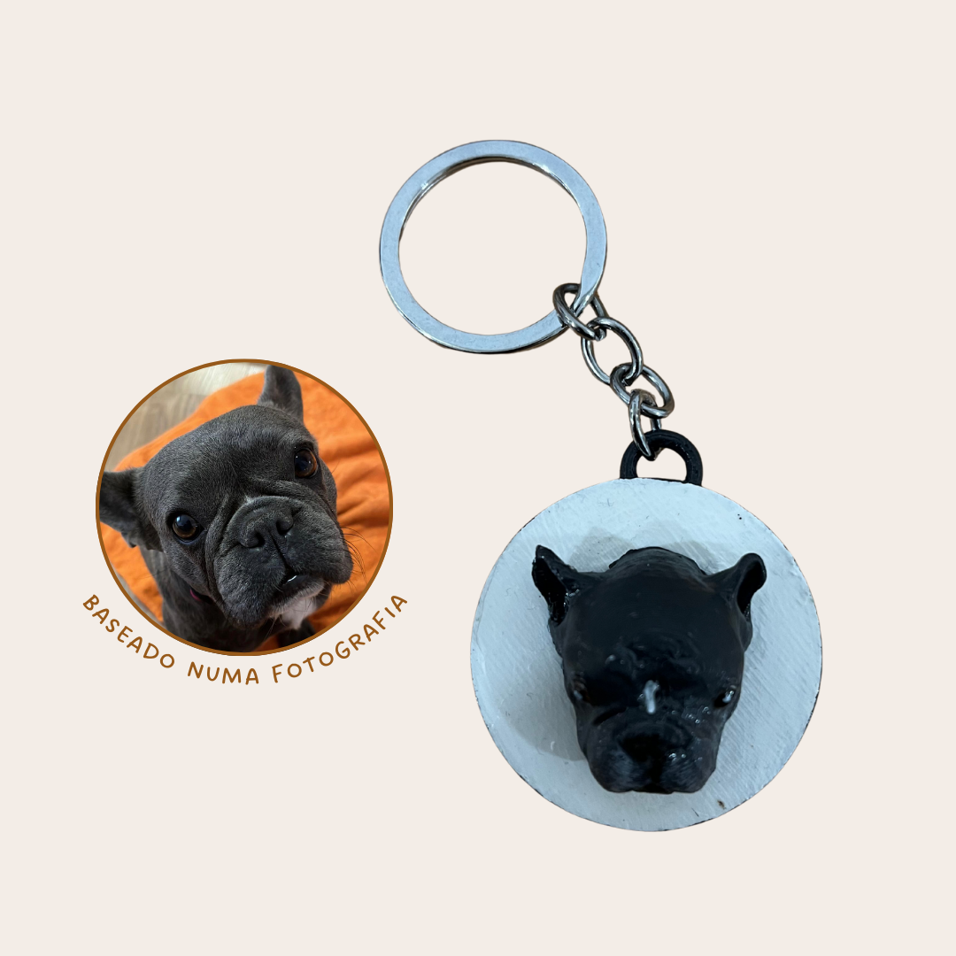 Leva o teu melhor amigo contigo para todo o lado com um porta-chaves personalizado, criado a partir de uma fotografia real do teu cão. Cada peça é impressa em 3D em PLA e pintada à mão, tornando cada porta-chaves único e especial.